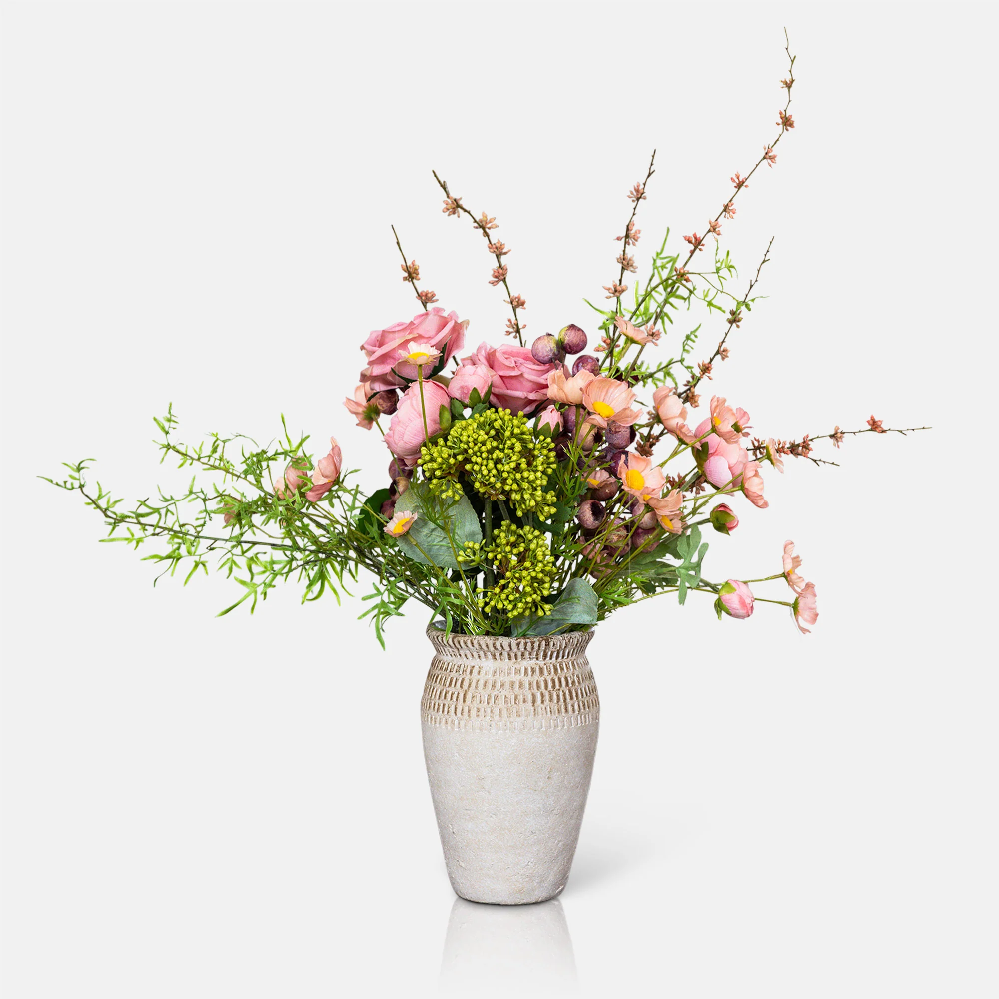 Like a breath of fresh air on any surface, this beautiful Bodenham Artificial Bouquet will have such an uplifting effect in your home. Made up from a mix of classic garden flowers like roses and ranunculus, it's made more contemporary with the addition of more textural and wild stems for a beautifully unique gathering.