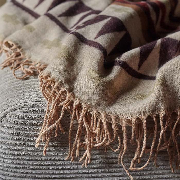 Add instant texture and pattern to your scheme with the tasseled Kensa throw in a mix of earthy brown hues.